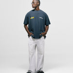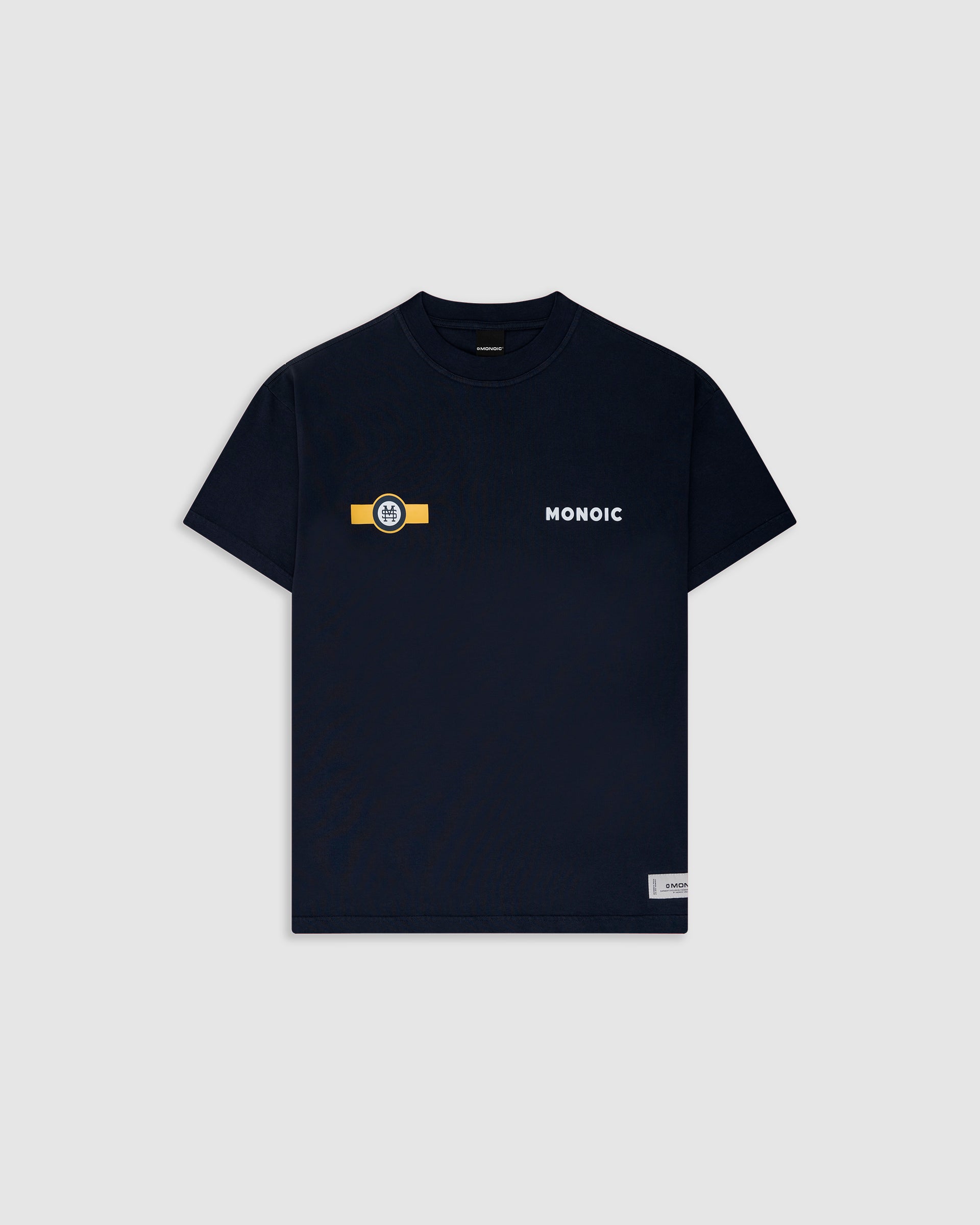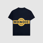 Camiseta Oversized color Azul Navy confeccionada en 100% algodón. Presenta estampado en serigrafía de alto relieve en color amarillo en la espalda. Incluye marquilla tejida MONOIC en el lateral izquierdo.