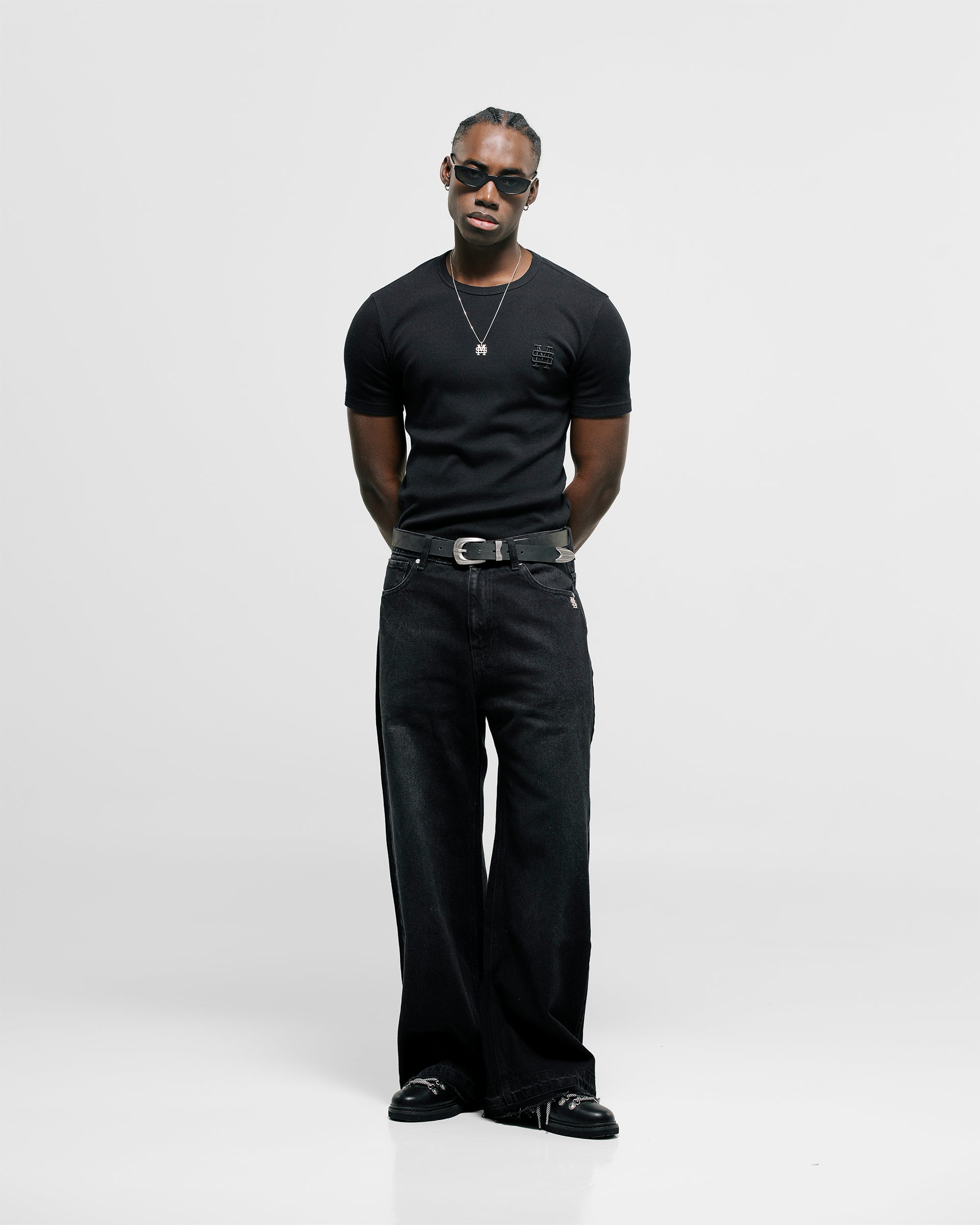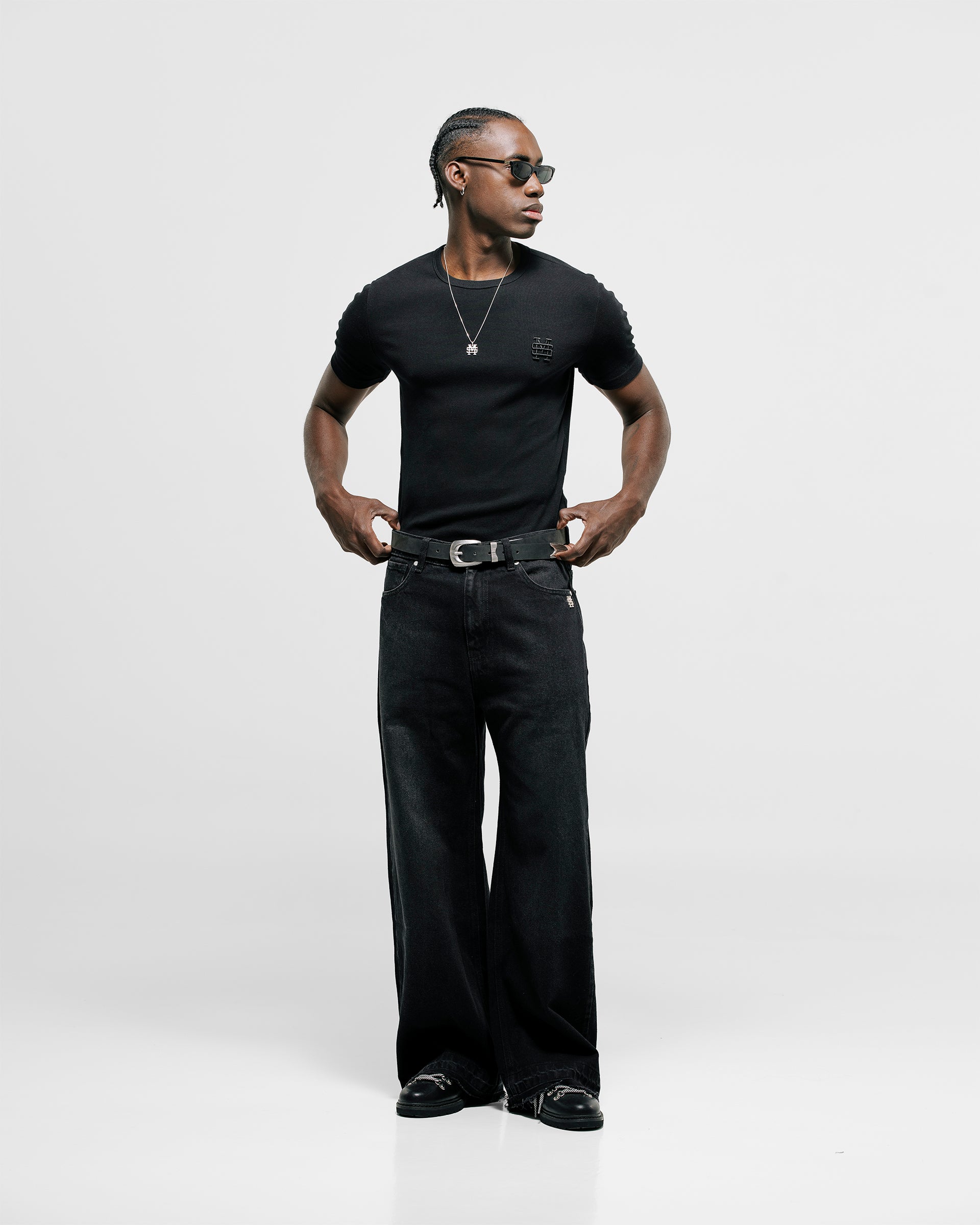 Camiseta Muscle Fit negra con monograma bordado y ajuste ceñido | MONOIC