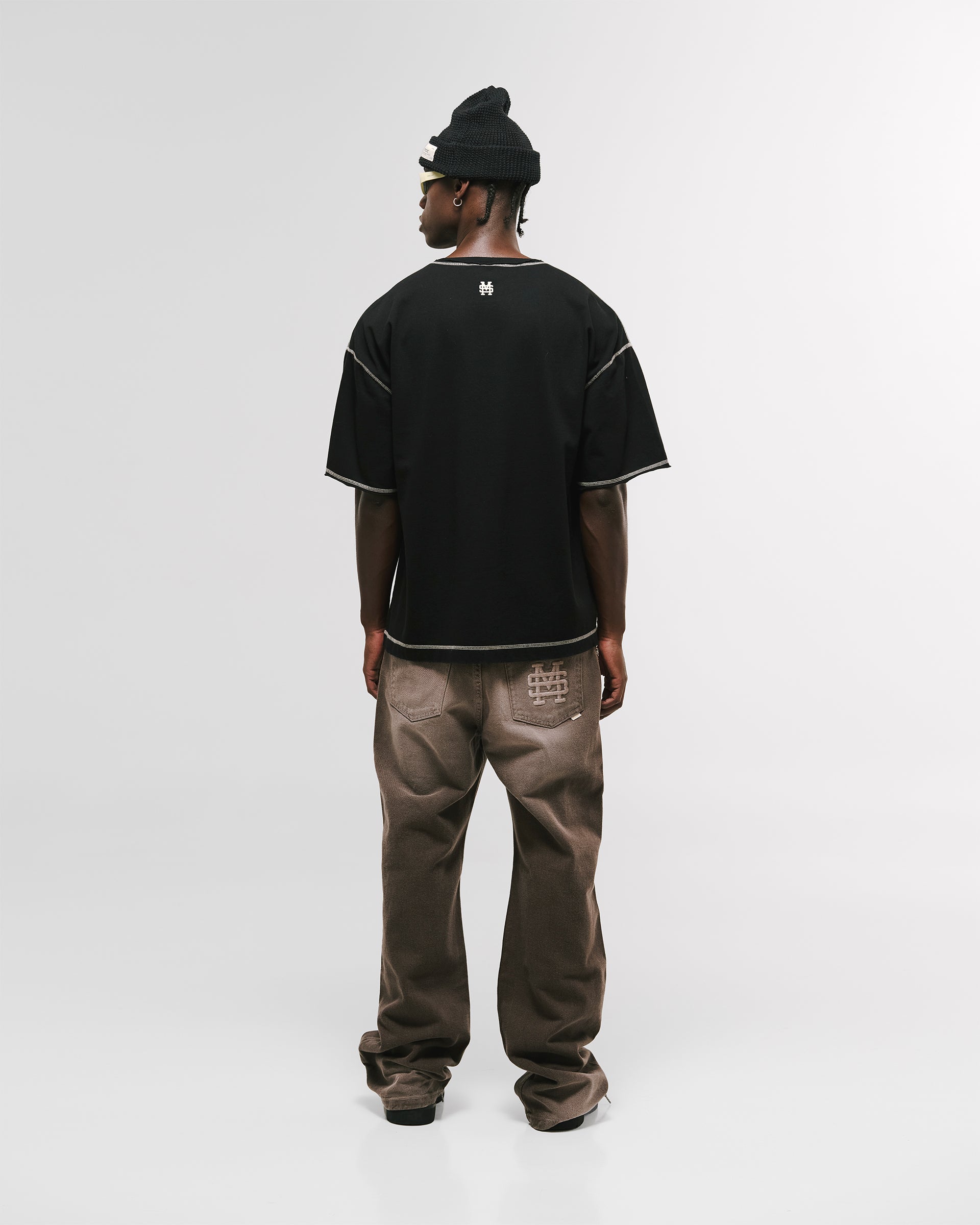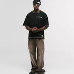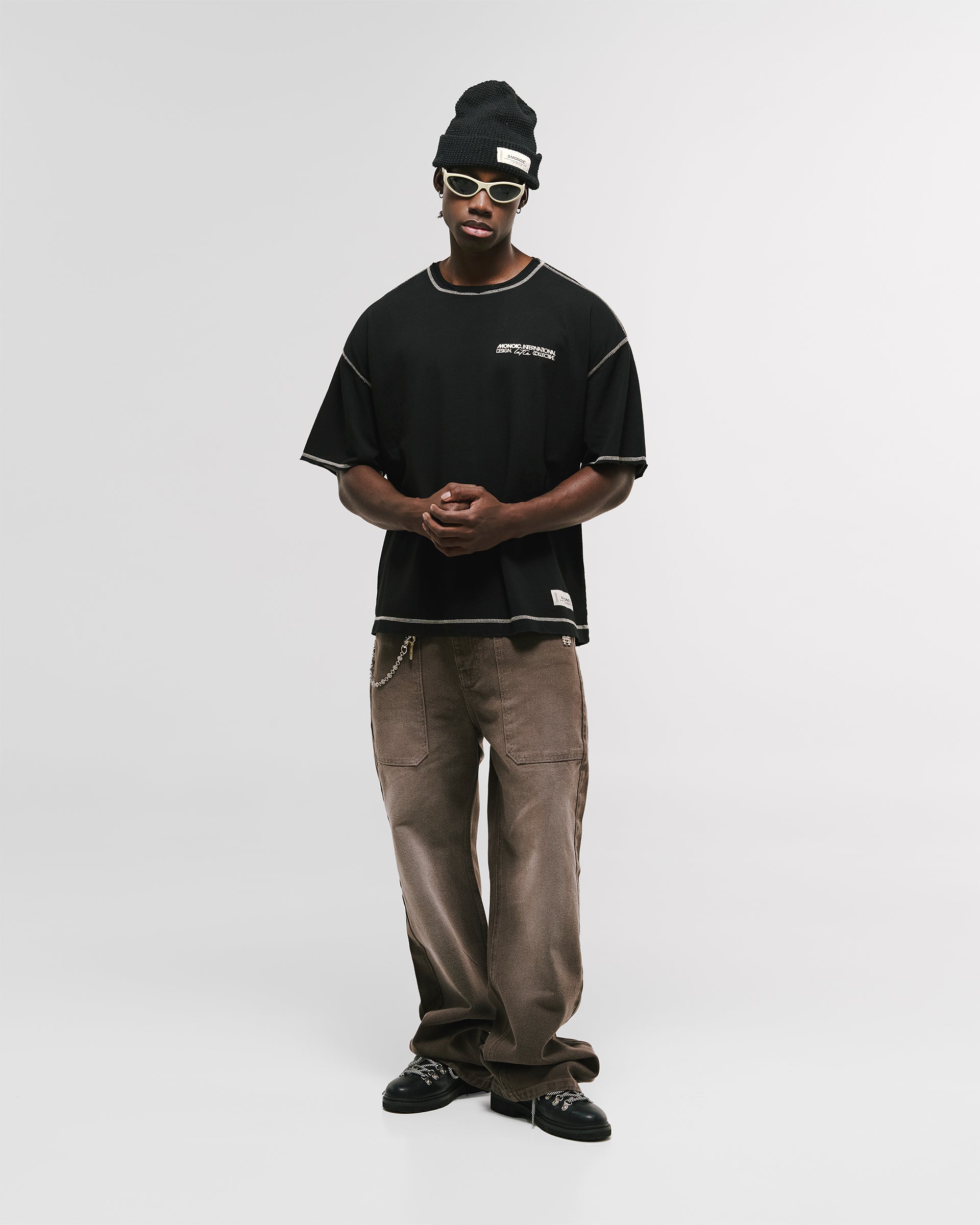 Camiseta Boxy Fit Design Collective en color Negro Oscuro, confeccionada en 100% algodón de alto gramaje (250 gsm). Nuevo boxy fit: silueta más holgada y caída en hombros. Costuras en contraste y acabados con desgaste: cuello, mangas y cintura con dobladillo abierto para un carácter vintage. Estampado en serigrafía de alto relieve en el pectoral izquierdo (punto corazón) y marquilla MONOIC en la cintura del lado izquierdo. Hecho en Colombia.
