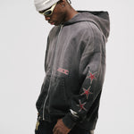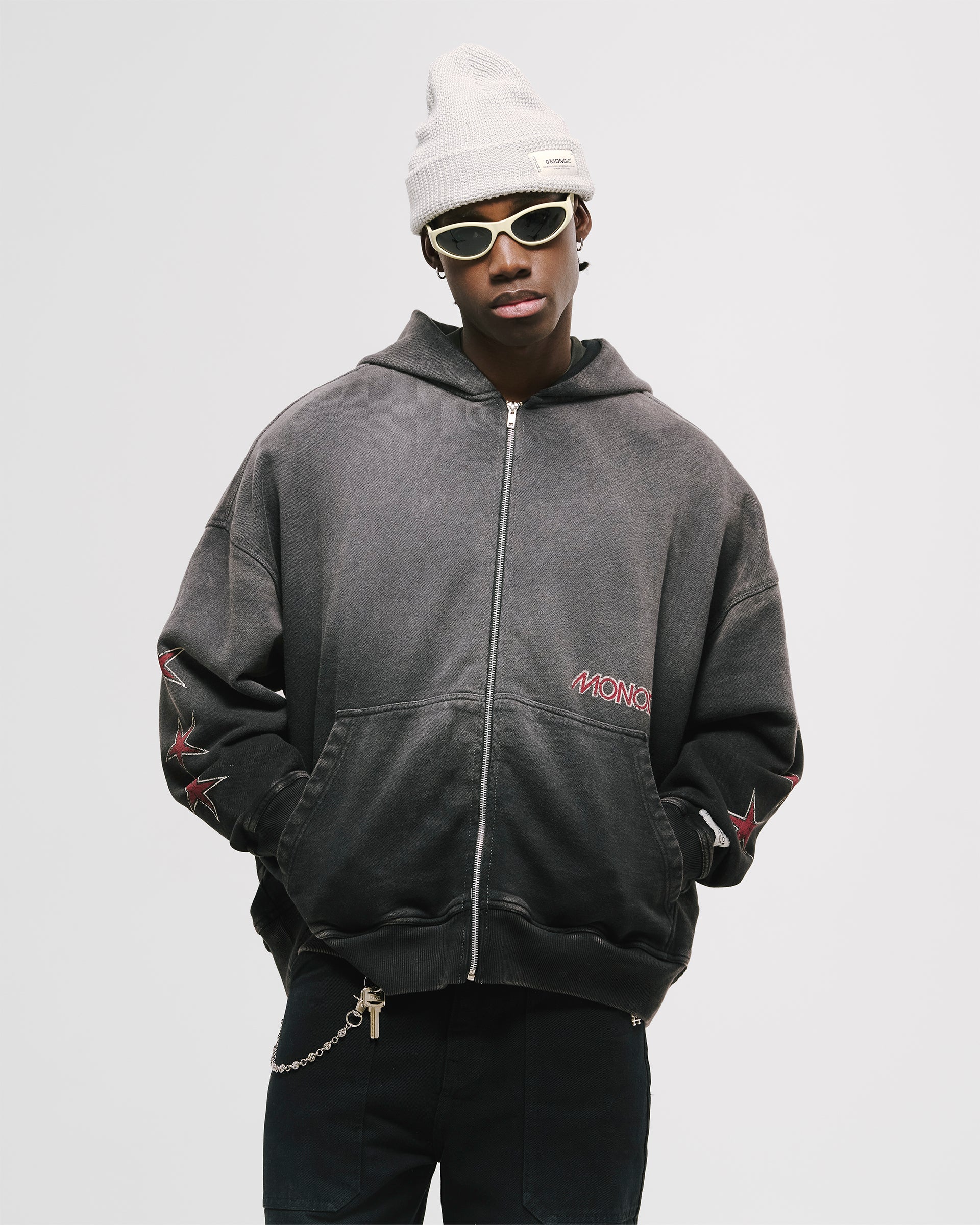 Zip Hoodie Monoic Records - Negro Desgastado – MONOIC SAS