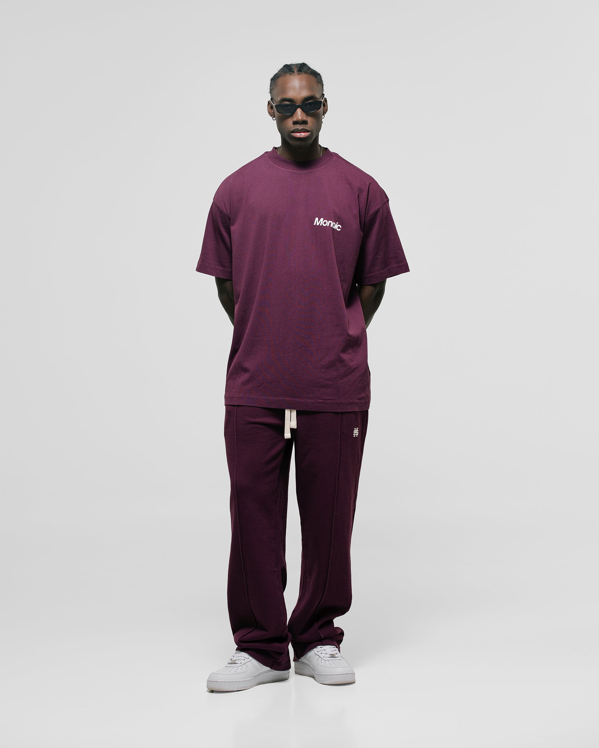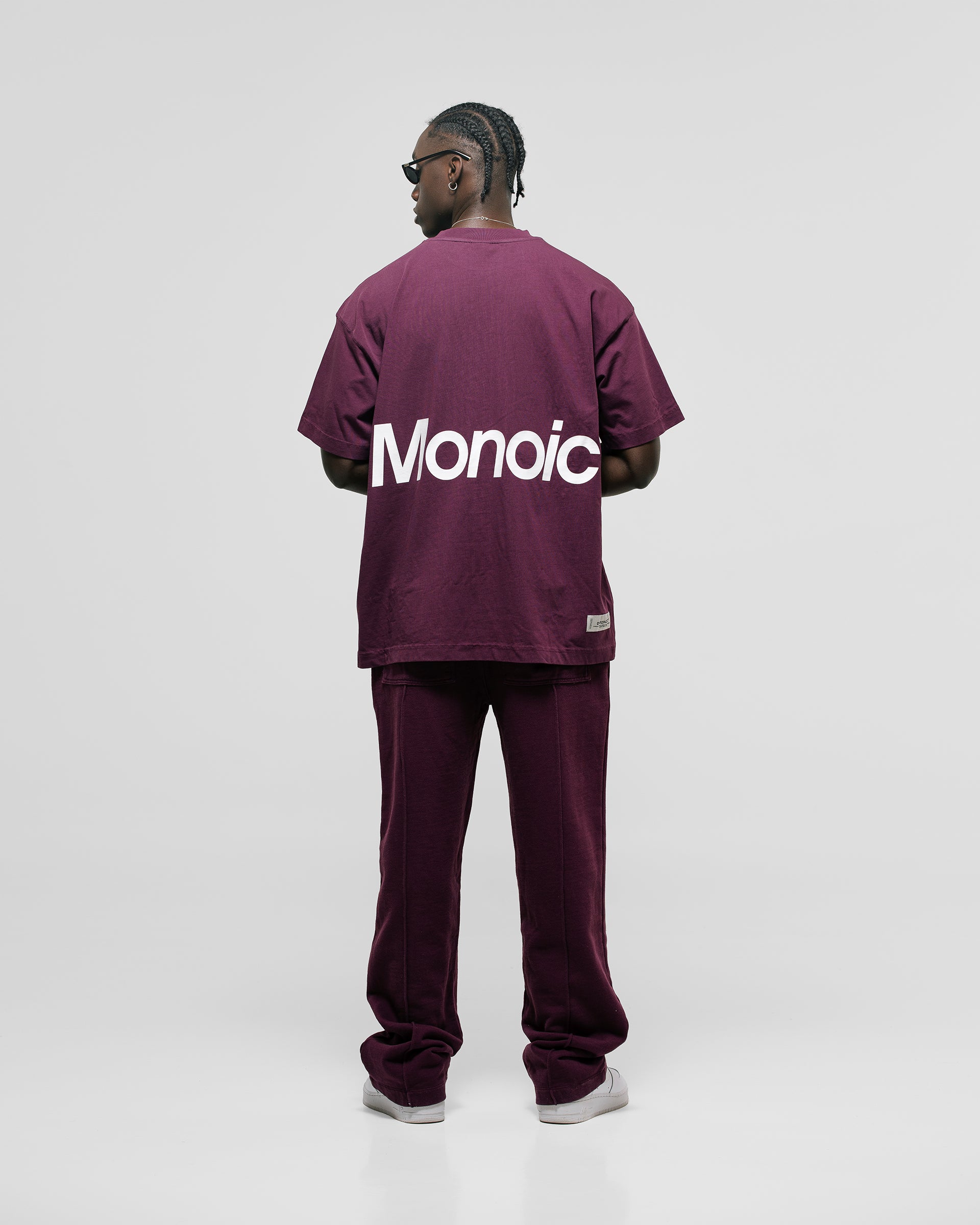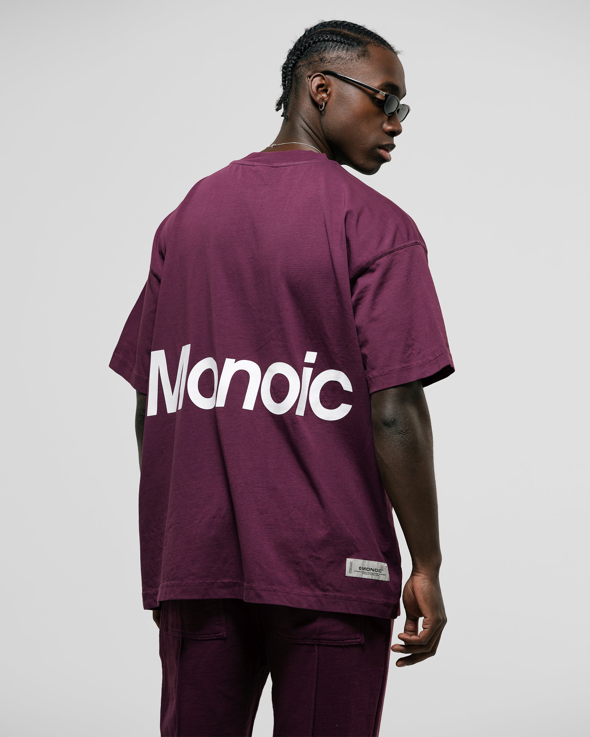 Camiseta de manga corta color Burgundy con oversized fit, hecha en jersey premium de 100% algodón (250 gsm). Cuello redondo en rib y logo “Monoic” estampado en la espalda. Hecha en Colombia.
