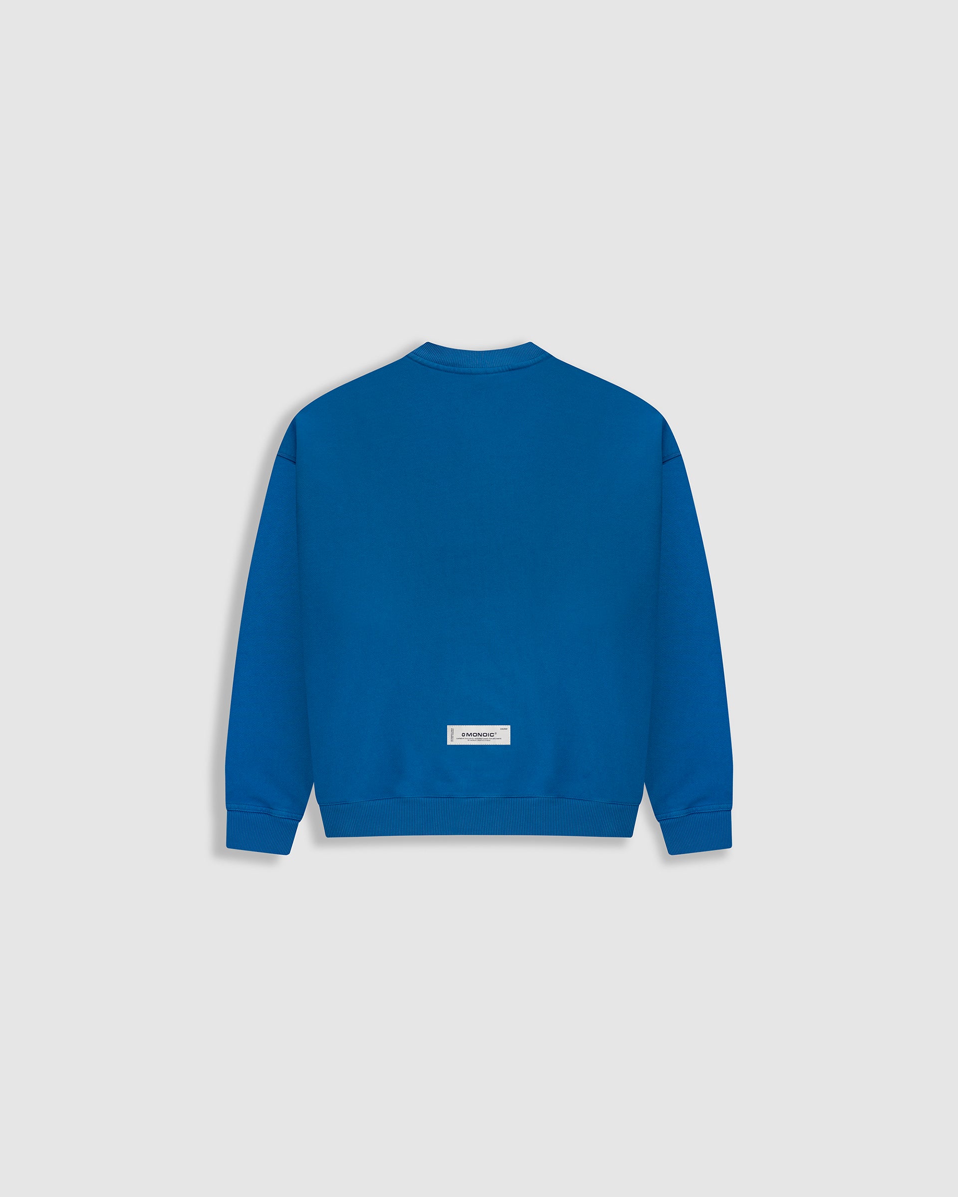 Crewneck oversized color Azul Cobalto, confeccionado en burda sin perchar de 100% algodón (400 gsm) con oversized fit. Cuello redondo, puños y cintura en rib. Logo MONOIC en serigrafía de alto relieve en el pectoral izquierdo. Hecho en Colombia.
