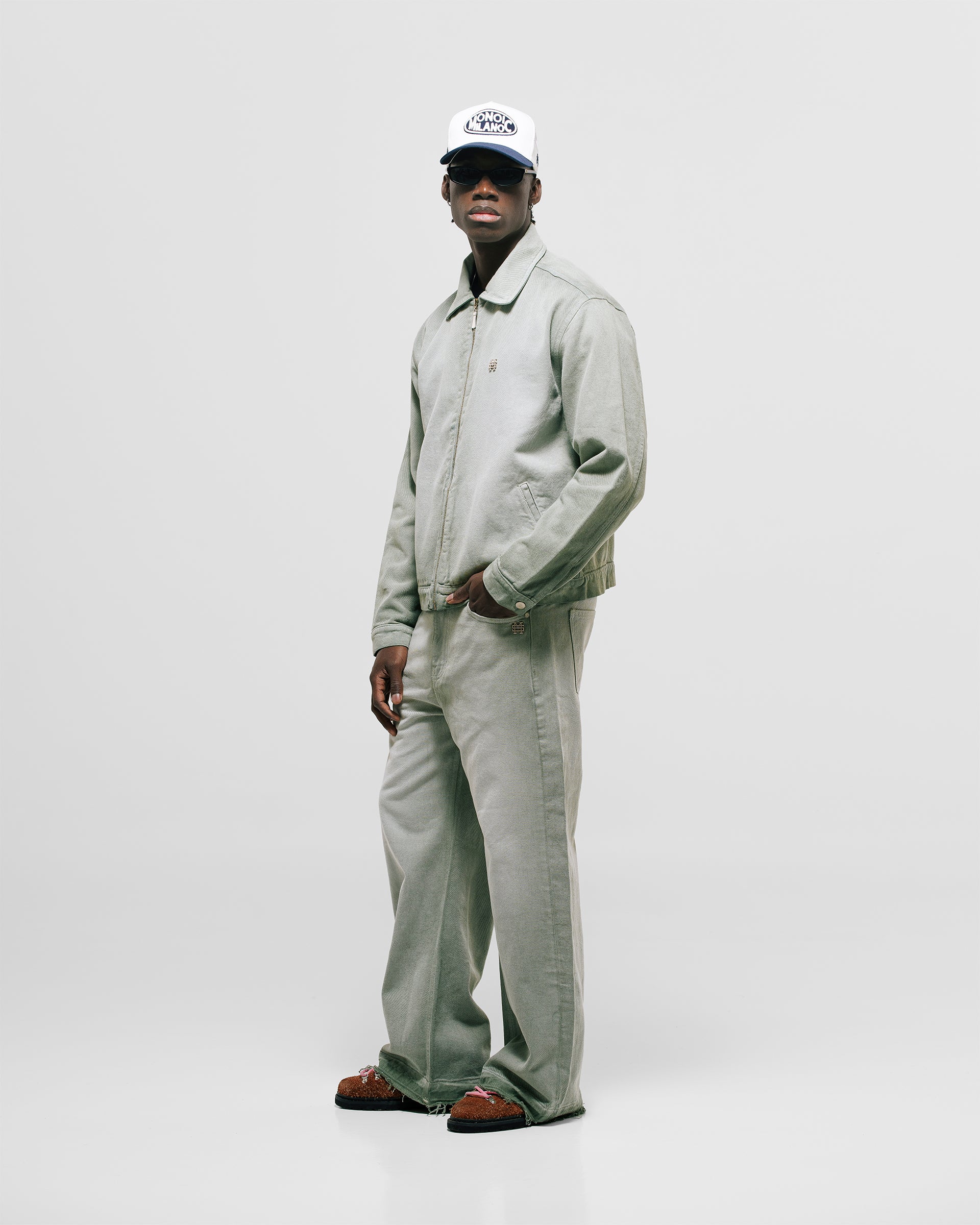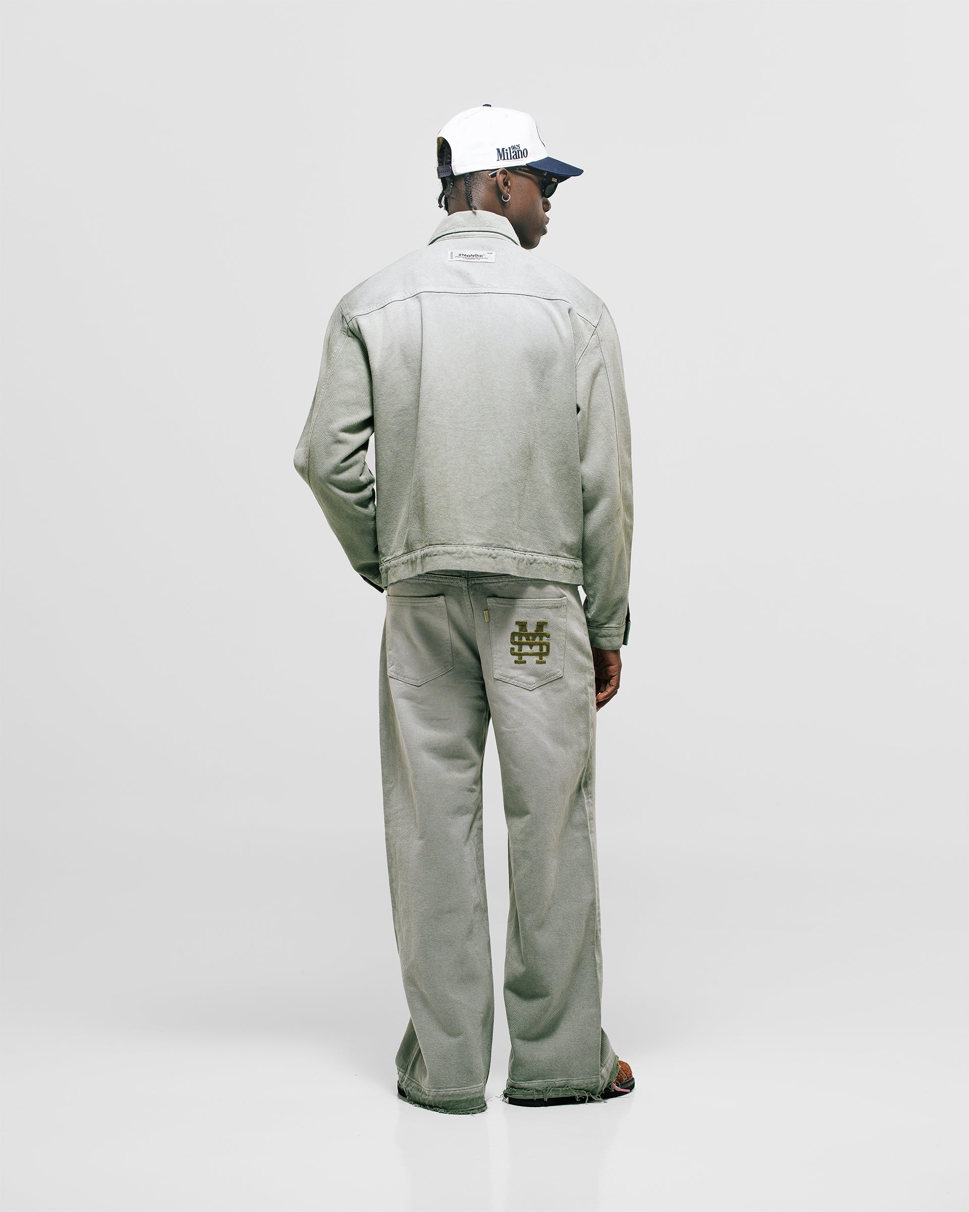 Chaqueta hecha en drill 100% algodón, versión jacket de nuestros flared pants con los mismos acabados y detalles. Color verde oliva desgastado para un look moderno y versátil. Diseño nuevo (revisar guía de tallas) con cierre frontal y monograma metálico en el pectoral izquierdo.