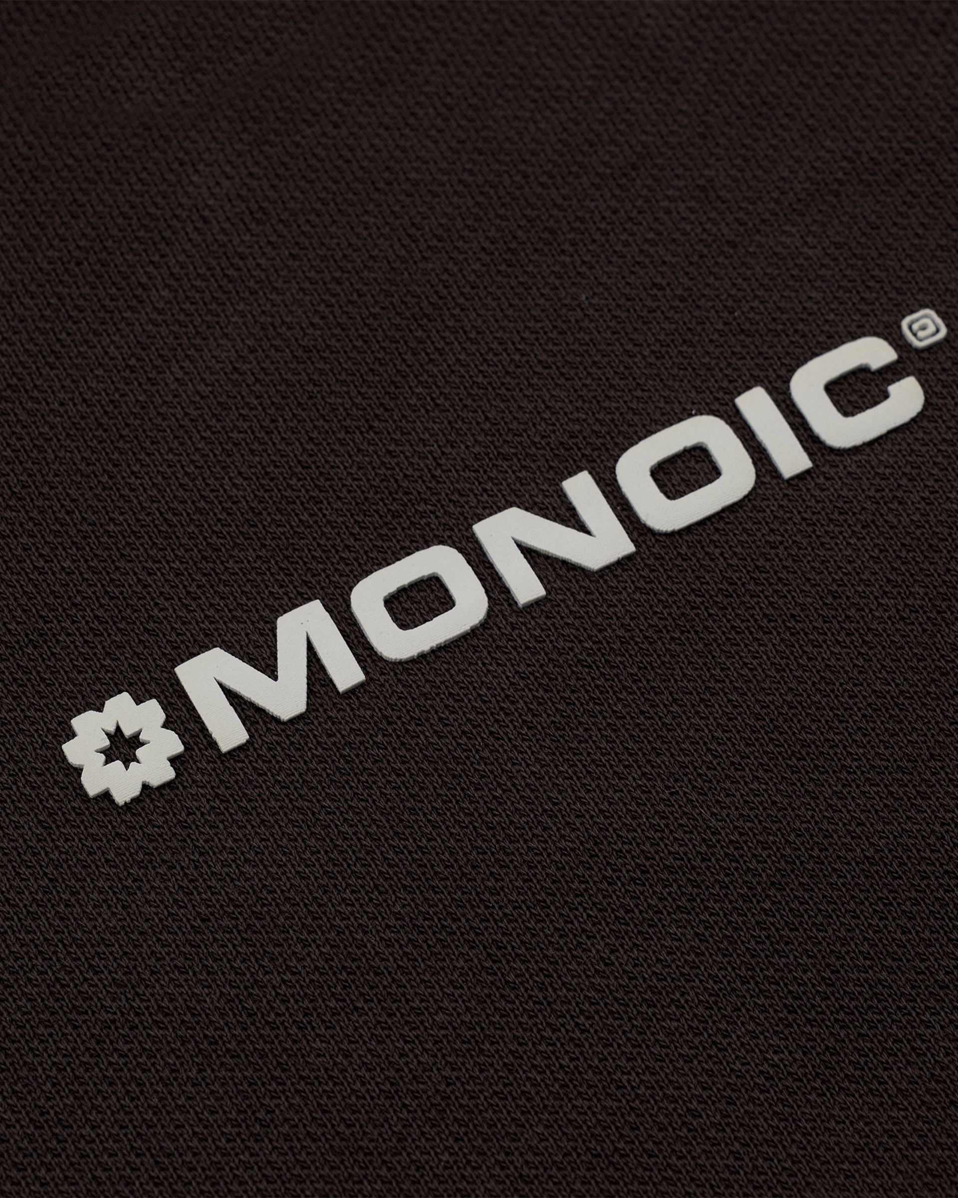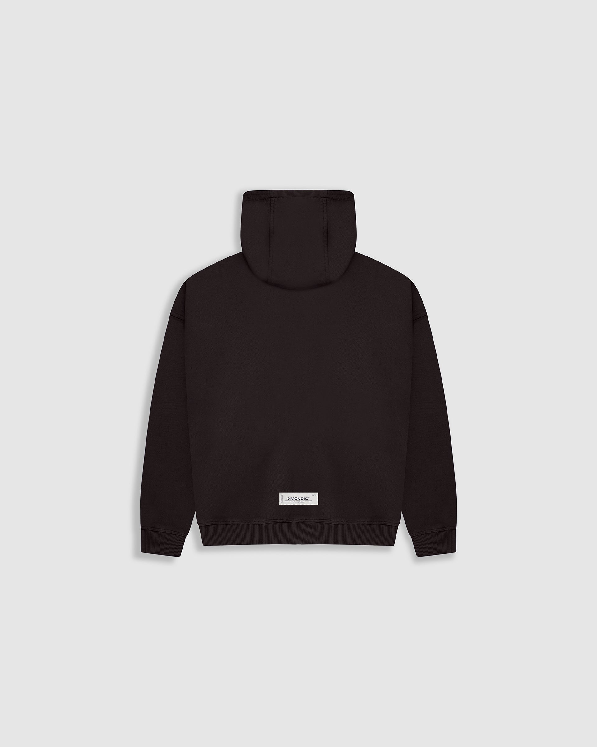 Hoodie oversized color Café Chocolate, confeccionado en 100% algodón de alto gramaje (400 gsm). Pre-encogido y teñido en prenda para máxima calidad y terminación. Incluye capota, bolsillo tipo canguro, puños y cintura en rib. Logo MONOIC en serigrafía de alto relieve en el pectoral izquierdo. Hecho en Colombia.