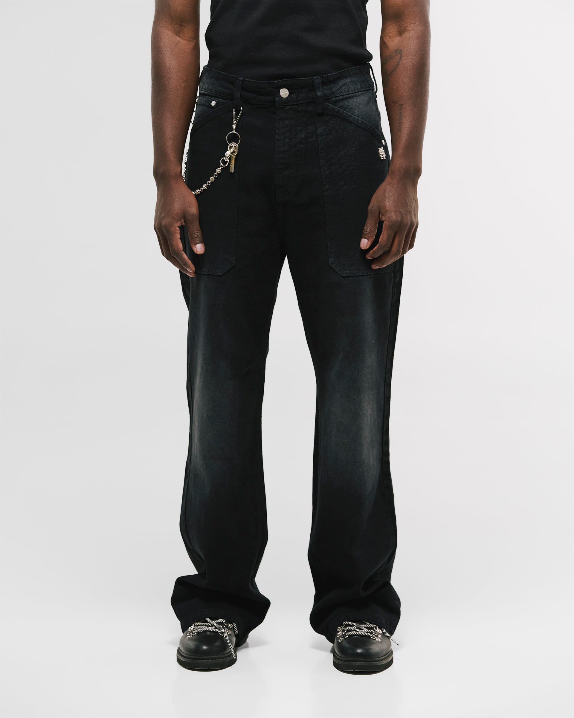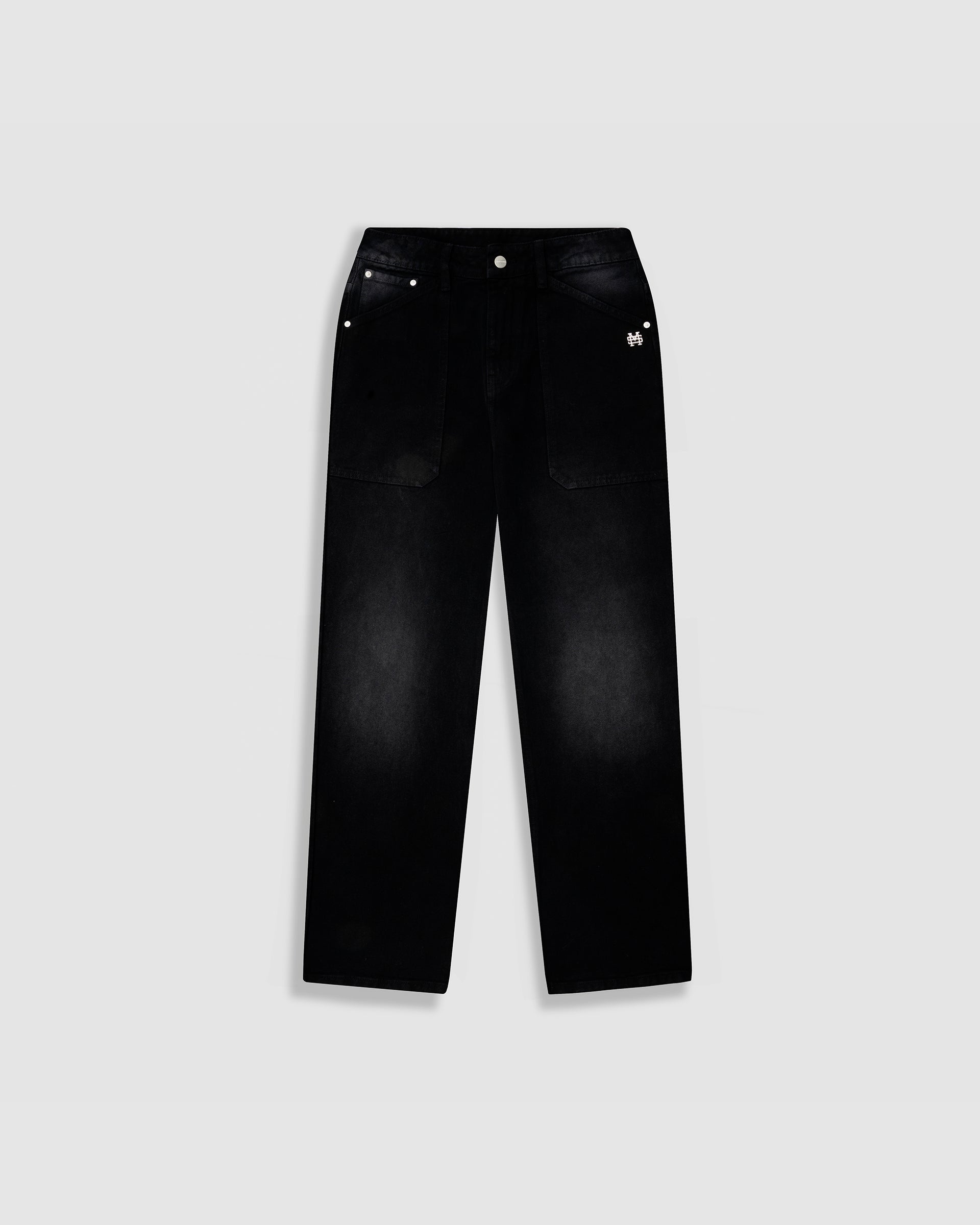 Pocket Straight Pants – Negro Desgastado – MONOIC SAS