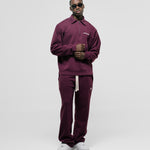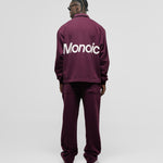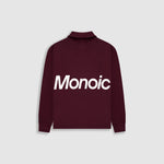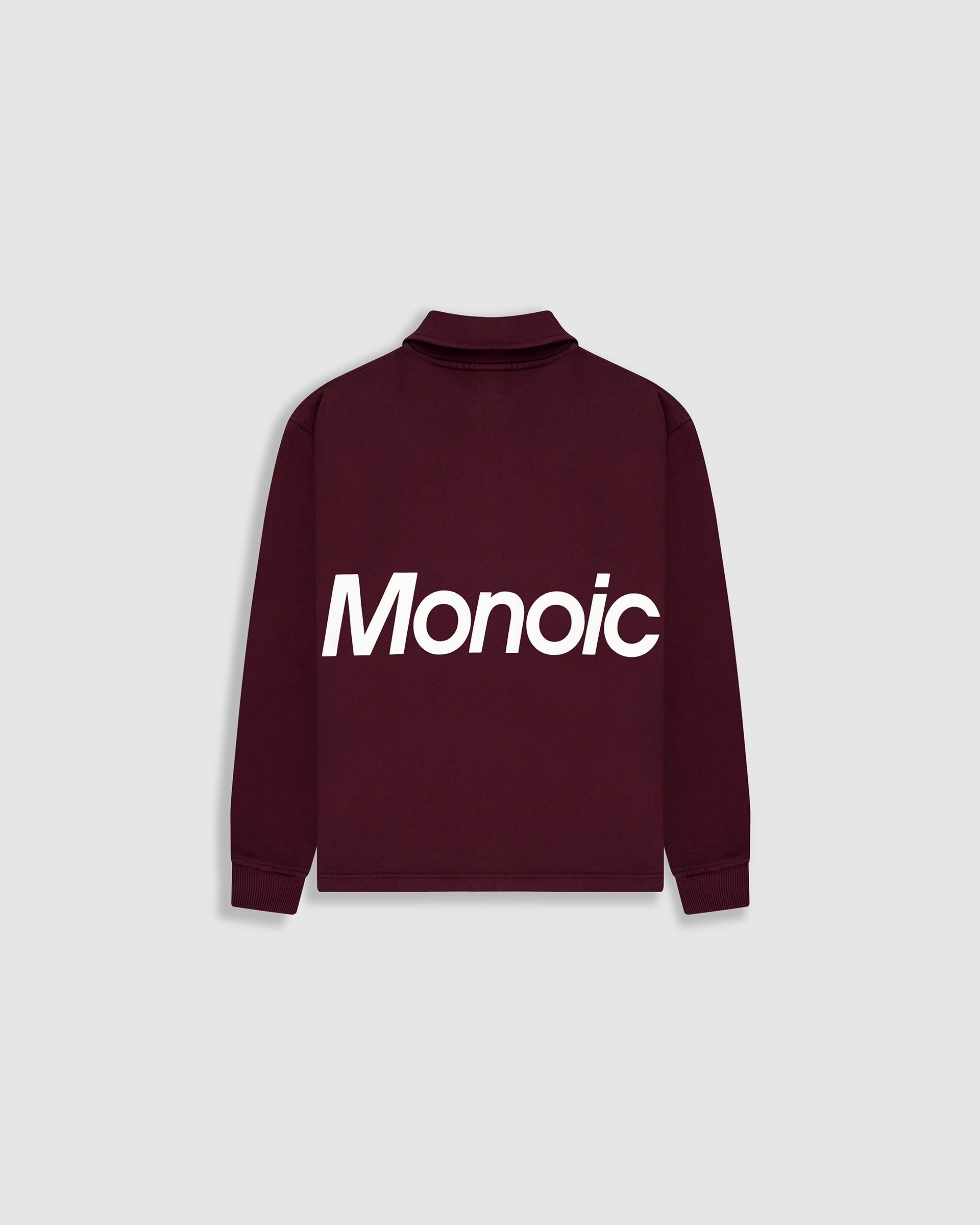 Quarter Zip V3 Oversized en color Burgundy, confeccionado en burda sin perchar de 100% algodón (410 gsm). Silueta con oversized fit, cuello alto con cierre a un cuarto, puños en rib y acabado premium. En la espalda, estampado “Monoic” en serigrafía de alto relieve para un look definido y elegante.