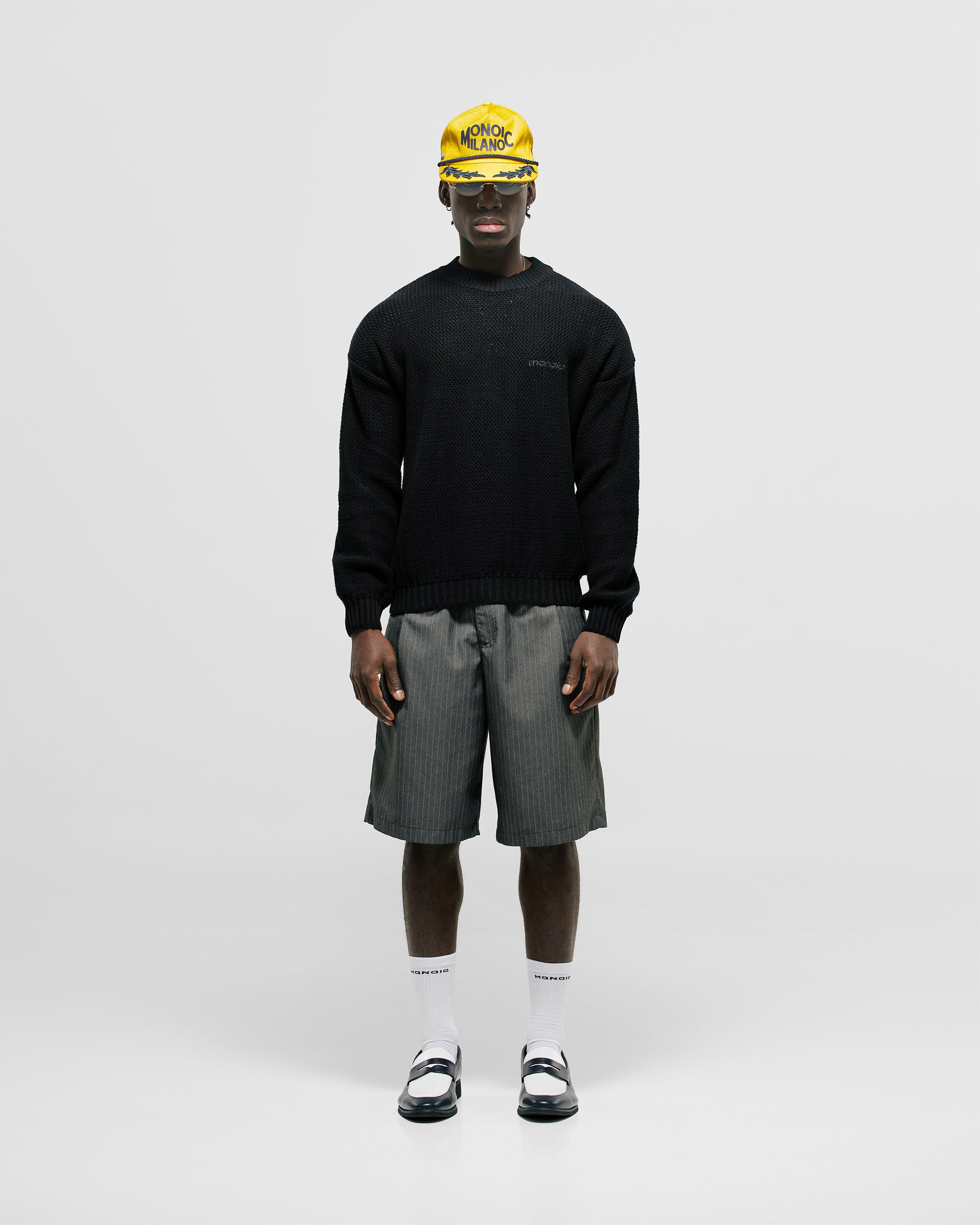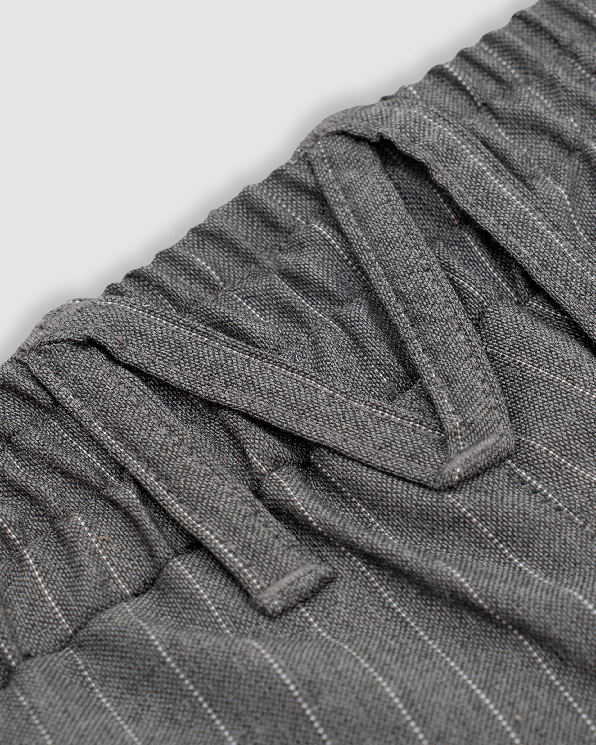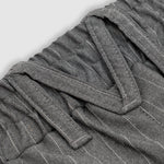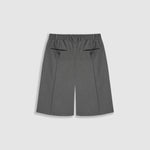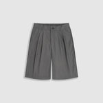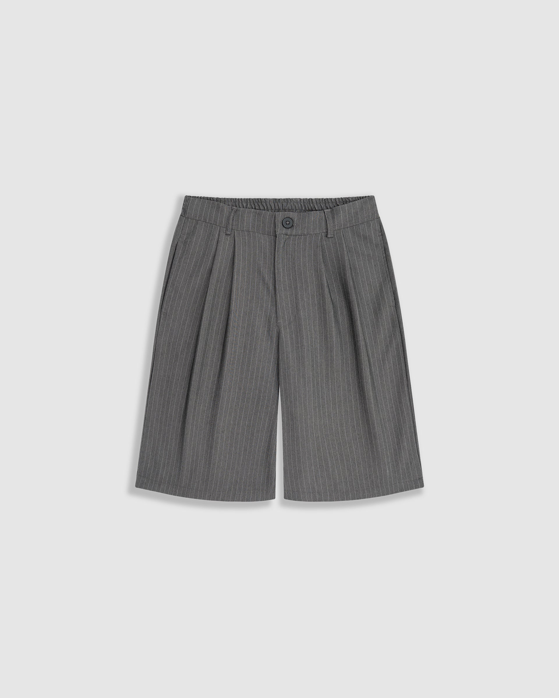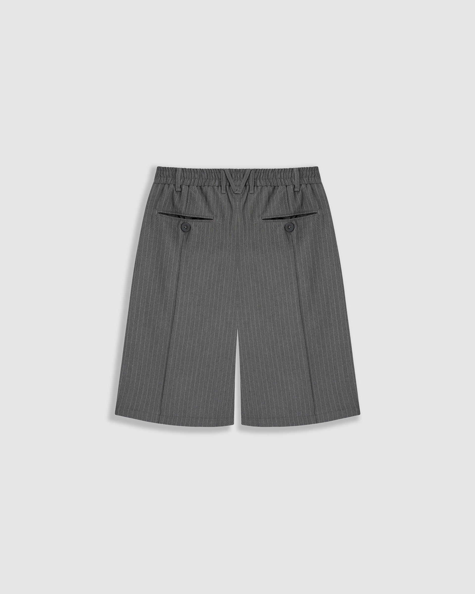 Short tipo trouser en color Gris Ratón con patrón de rayas verticales para un look moderno y versátil. Corte oversized de caída fluida y cómoda gracias a su mezcla con elastano. Cuatro bolsillos funcionales (dos frontales y dos traseros). Cierre principal con botón frontal; cada bolsillo trasero lleva un botón.